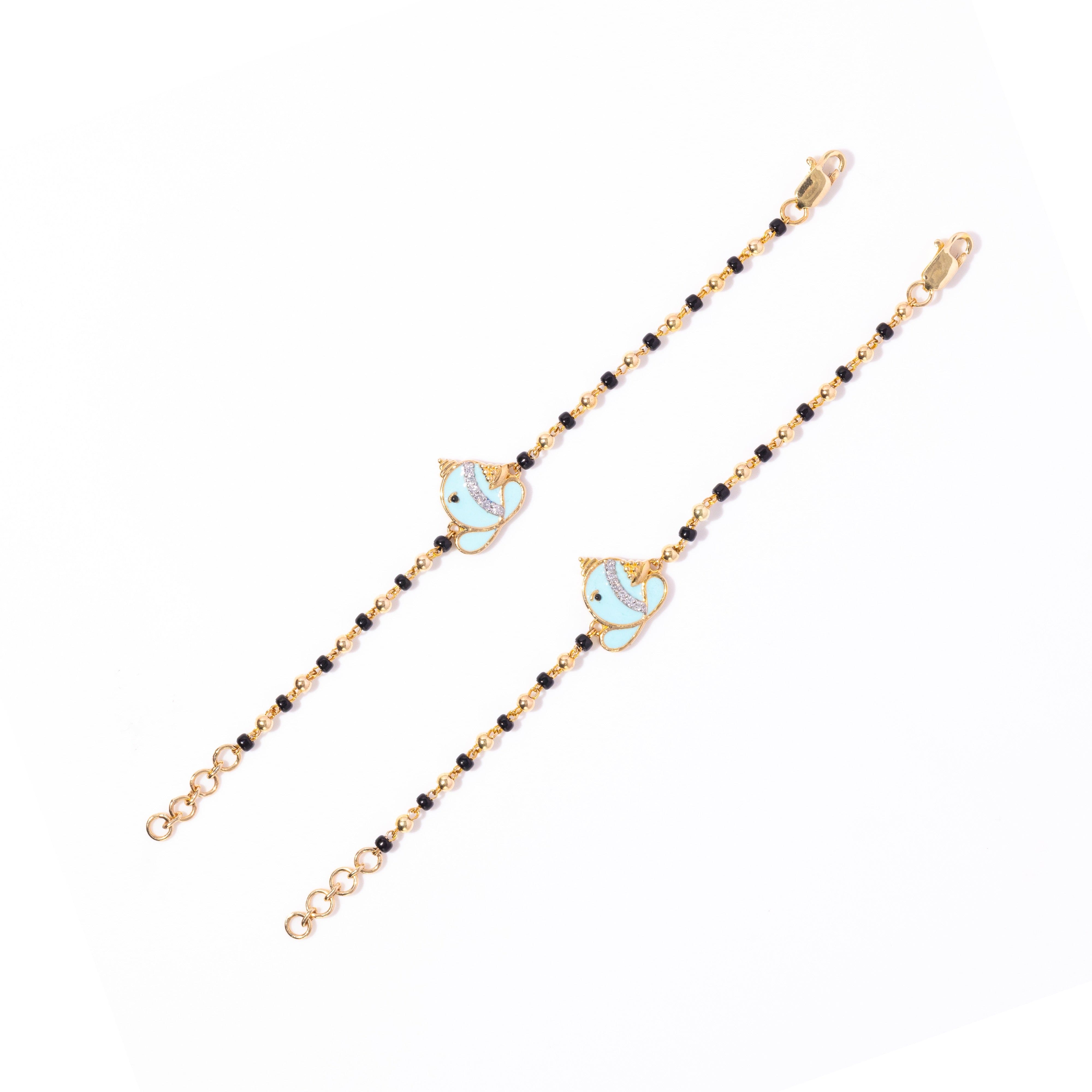 Blessings of Lord Ganesh in calming blue, crafted into a pair of nazariyas for your baby’s everyday protection.